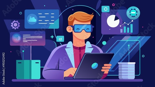 software, coding, hologram, man, information technology, programmer, information technology, goggles, programming, research, computer, futuristic, concept, digital, technology, code, developer, datum, security, cyber, information, tech, virtual, overlay, script, display, development, holographic, it specialist, web, design, illustration, business, laptop, cyberspace, communication, work