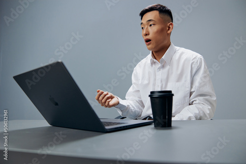 man, laptop, asian, businessman, working, grey, table, smiling, business, communication, computer, adult, architect, client, person, connection, content, corporate, entrepreneur, creativity, designer, director, engineer, life events, goggles, photogenic, home office, homework, horizontal, indoor, cyberspace, lifestyle, marketing, one person, professional, reading, research, skilled, small business, typing, using, workspace, writer, young adult, zoom, electronic mail, experienced, looking, space