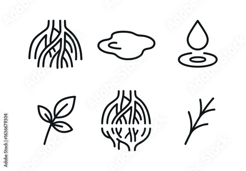 vector, outline, icon, mangrove, root, tangled, web, root, tangle, mud, pool, dripped, line, leaf, sprig, dot, twig