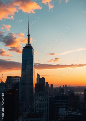Manhattan skyline panorama at sunset new york city usa skyscraper city building skyscraper downtown business architecture cityscape