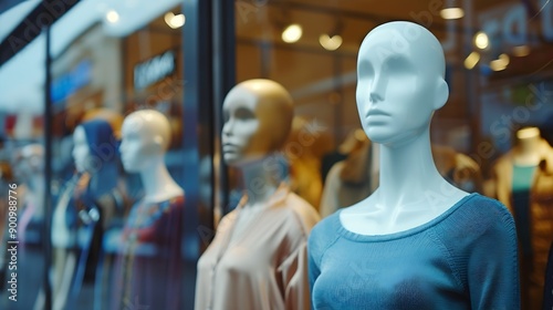 Mannequins front shop Fashion clothes design industry : Generative AI
