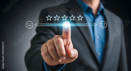 client, feedback, rating, review, satisfaction, service, life events, quality, evaluation, survey, opinion, choice, selection, digital, technology, interface, user, system, performance, engagement, interaction, assessment, judgement, score, star, happy, sad, progress, bar, touch, screen, modern, business, concept, human, finger, pressing, buttons