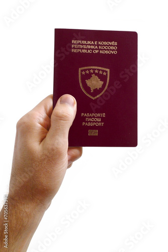 kosovo, travel, passport, human hand, document, biometric, brown, business, business travel, closeup, closed, cut-out, datum, flying, government, id card, identity, journey, macrophotography, no people, photo, preparation, small, studio shot, textbook, tour tourism, travel destination, vacation, vaccination, vertical, white background, working
