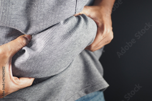 stomach, waist, loss, obesity, weight, unhealthy, skin, overweight, figure, fitness, excess, abdomen, person, corrective, nourishment, health, belly, thick, body, big, fat, holding, adult, disease, fats, hand, male, corpulent, shape, size, tight, tummy