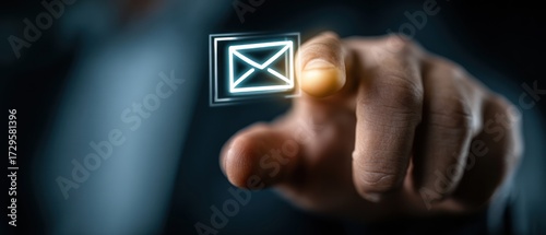 Man's hand interacting with an email symbol, concept of electronic communication