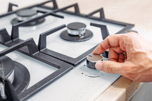 Man's hand set temperature on control panel of hob