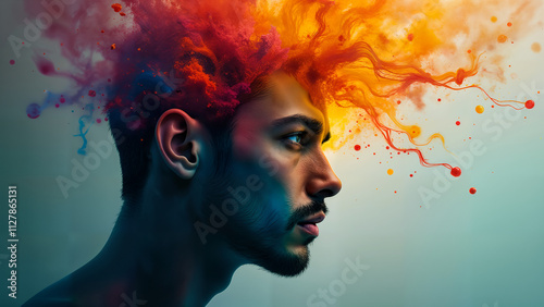 Man's Head Dissolving into Colorful Paint
