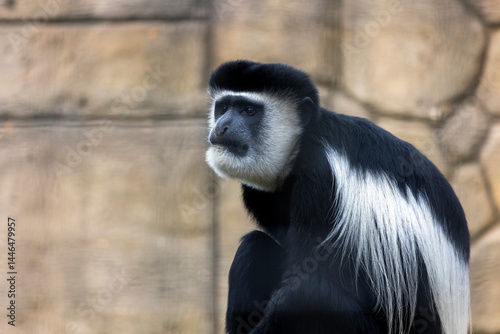animal, monkey, tree, africa, mammal, ape, face, primate, wild, nature, forest, natural, african, furry, wildlife, behaviour, creature, habitat, hairy, looking, uganda, portrait, white, black, outdoors, closeup, colobus, guereza, conservation, expression, fur, outside, rainforest, resting, safari, watching, adorable, funny, arboreal, evergreen, eastern, zoo, captive, abyssinian