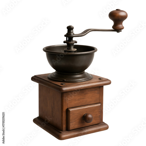 coffee grinder, manual, kitchen, equipment, brew, barista, cafes, rustic, vintage, brown, wooden, mill, bean, grated, culinary, retro, traditional, preparation, utensil, brewing, drink, handle, mechanism, household, decor, isolated, studio, cafes, classic, old-fashioned, beverage, espresso, object, tool