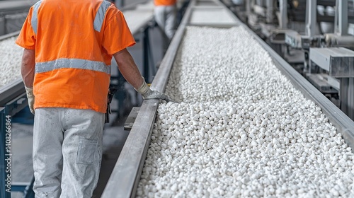 Manufacturing process overview industrial facility conveyor system indoor close-up production efficiency