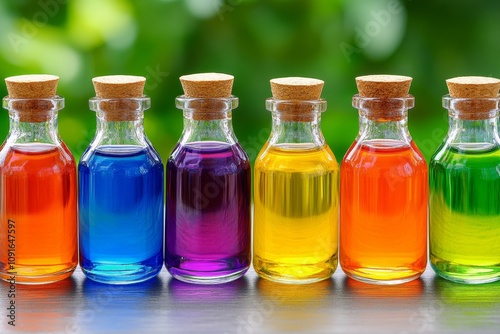 colourful, infused, oil, natural, ingredient, herb, garlic, spice, homemade, culinary, epicure, food, bright, oil, aesthetic, condiment, kitchen, cooking, favor, trend, art, vibrant, bottle, glasses, bottle, colours