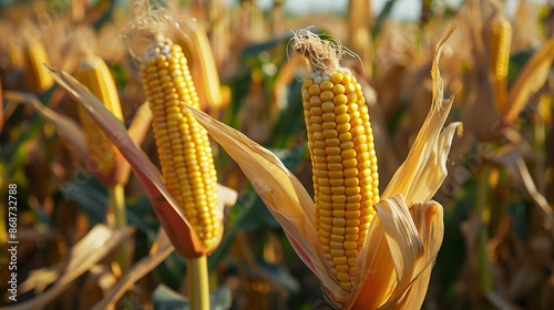 Many ears of corn are growing in the field very detailed and realistic shape