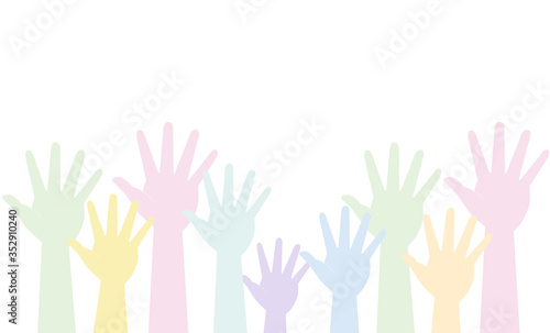 Many hands are pulled up (work, vacancies, help, society). Vector image, icon.