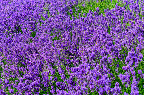 Many small blue lavender flowers in a sunny summer day in Scotland, United Kingdom, with selective focus, beautiful outdoor floral background