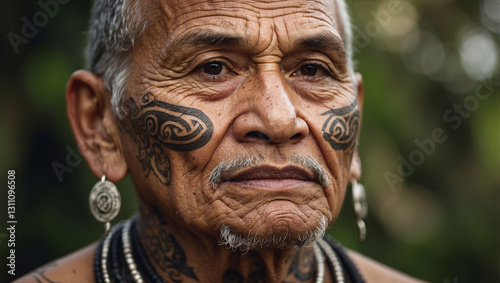 maori, elder, facial, tattoo, wisdom, expression, natural, lighting, greenery, blurred, hd, cultural, rich, heritage, indigenous, tradition, detailed, portrait, powerful, wise, dignified, ageing, nature, depth, strength, texture, authentic