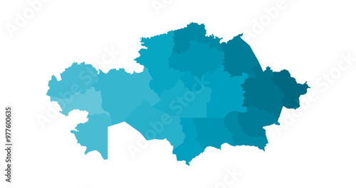 Map of Kazakhstan. 17 administrative regions in different shades of blue. Simplified vector illustration of the political map of the Republic of Kazakhstan
