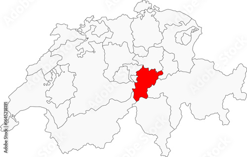 Map of Switzerland highlighting the canton of Uri. Ideal for projects on its central location, alpine landscapes, and historical significance to the country's founding.