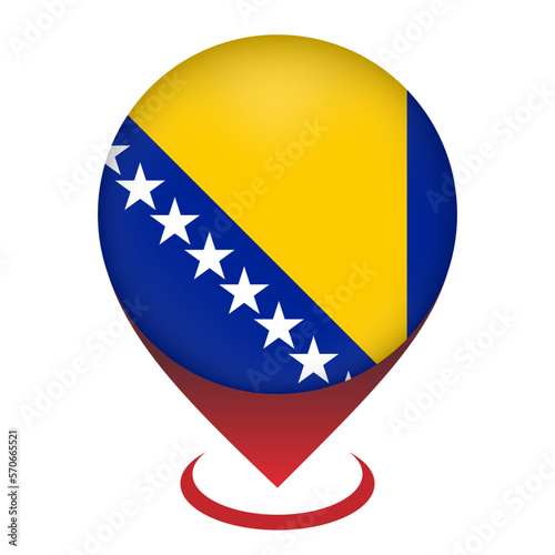 Map pointer with contry Bosnia and Herzegovina. Bosnia and Herzegovina flag. Vector illustration.