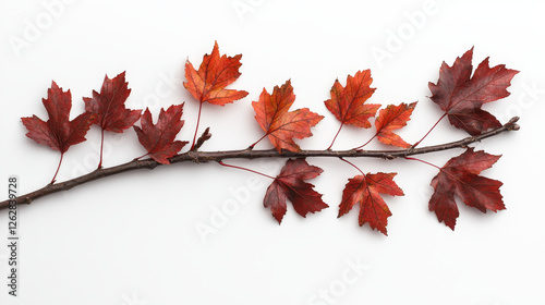 maple, tree branch, autumn, colours, natural, beauty, leaf, tree, red, orange, fall, season, plant, nature, detail, twig, flora, foliage, botanical, close, white, background, autumn, vibrant, isolated, stem, design, element, decoration, decorative, object, flat, lay, still, life, studio, nobody, horizontal, pattern, single, simple, minimalist, organic, texture, seasonal, top, view