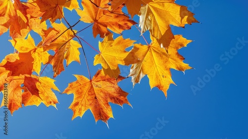 maple, sunny, day, against, deep, leaf, autumn, blue, sky, background, pattern, texture, nature, gold, tree, landscape, light, leaf, forest, beauty, orange, colours, wallpaper, red, plant