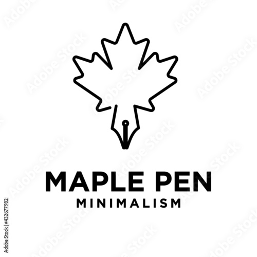 maple pen concept pen and maple leaf logo vector illustration icon design isolated background