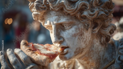 Marble Statue of Apollo eat pizza