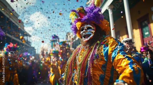 mardi gras, carnival, celebration, costume, mask, new orleans, parade, party, festive, colourful, confetti, feather, bead, laughter, joy, tradition, holiday, culture, street, celebratory, fun, america, louisiana, happy, masquerade, masked, costumed, festival, event, city street, crowd