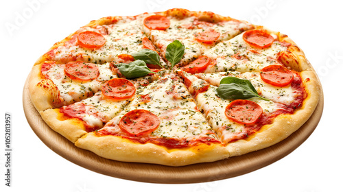 pizza, food, cheese, isolated, italian, mozzarella, tomatoes, dinner, pepperoni, meal, white, baked, crust, snack, salami, pepper, tasty, ham, meat, delicious, lunch, sauce, dough, red, fast food