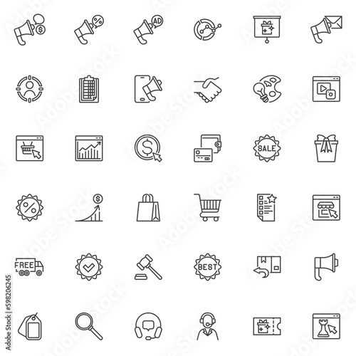 marketing, advertising, icon, set, collection, pack, line, thin, outline, linear, vector, symbol, signs, web, illustration, element, logotype, pictogram, flat, pixel, honed, design, clip art, graphic, simple, hollow, e-business, promotion, online, shopping, sale, discount, media, target, social, website, service, mobile, strategy, money, chat, presentation, support, commerce, planning, payment, client, e-business, label