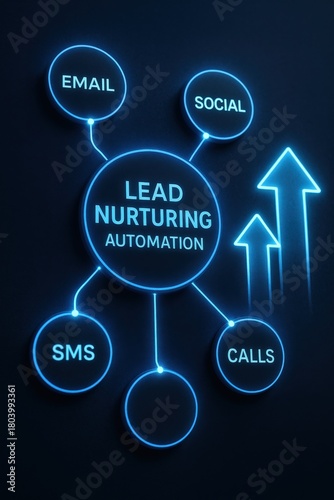marketing automation workflow performance concept. Lead nurturing automation concept with communication channels.