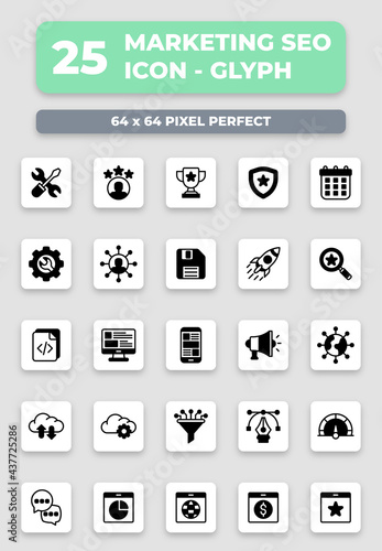 Marketing SEO Glyph Style Icon Collection Set