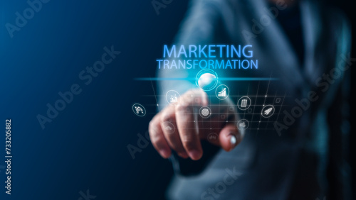 Marketing Transformation: Embracing Future Trends with Virtual Screens and Businessman's Hands