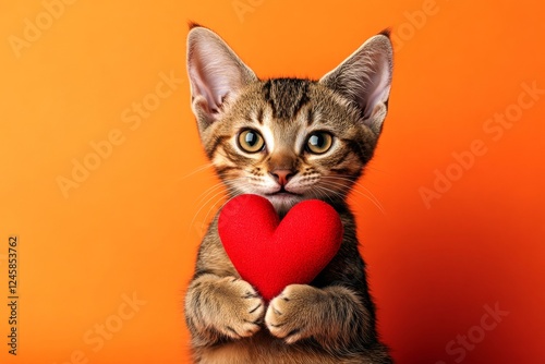 kitten, cat, february 14, symbol, holiday decorations, pet, concept, love, february 14, design, postcard, amusing, jocular, comical, commercial, cinema, plaything, copy space, advertisement, special occasion, regal, caring, aloof, adored, attractive, floral