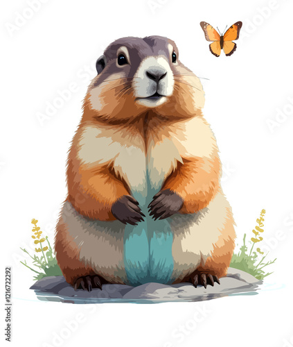 Marmot Vector Painting Adorable Fun Animal Playing With Butterfly