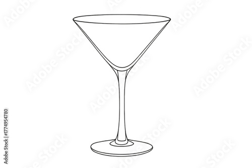 Martini glass transparent outline drawing, elegant drink stemware, cocktail party glassware sketch art