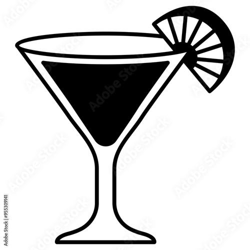 martini glass. wine drink with lemon