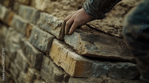 Mason laying bricks for a wall. Featuring craftsmanship and strength