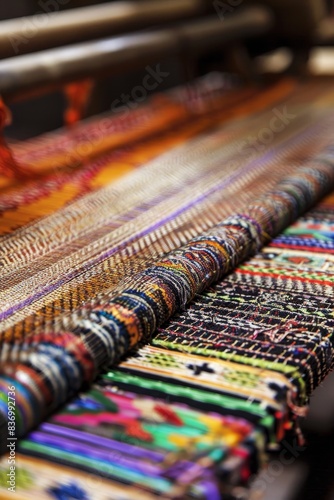Masterful Handloom Weaving of Colorful Threads Creating Intricate Patterns - Textile and Craft Concept