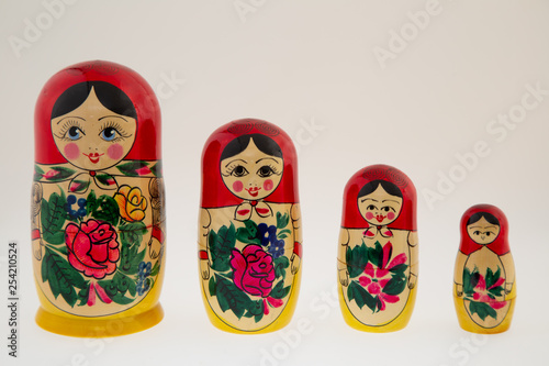 doll, toy, matryoshka doll, babushka, russia, doll, souvenir, isolated, wood, nesting, wooden, family, white, traditional, group, red, culture, painted, row, nested, set, small