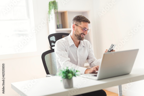 business, computer, person, man, office, technology, laptop, happy, photogenic, businessman, smiling, adult, caucasian, talking, coach, manager, sitting, successful, negotiation, teleconference, 40s, middle, age, tied-up, 1, work, cheerful, people, elegant, eyeglass, young, executive, conversation, client, staff, director, portrait, professional, entrepreneur, goggles, client, home, workshop, corporate, mature
