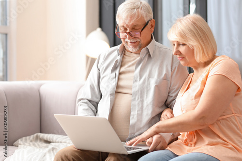 Mature couple with laptop resting at home