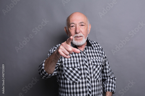background, person, man, camera, senior, adult, caucasian, looking, male, people, pointing, showing, studio, authority, bossy, businessman, choice, choosing, concentration, concept, confidence, decision, elegance, expertise, finger, grey, human, intelligence, leadership, lifestyle, mature, man, occupation, 1, only, professional, serious, standing, success, beard, closeup, win over, elderly, old, portrait