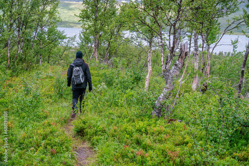mature, woman, hiking, down, over, forest, free, landscape, higher, altitude, norwegian, mountain, healthy, lifestyle, norge, rear, view, nature, green, summer, plant, outdoors, moss, beauty, environment, leaf, people, travel, wild, mountain, autumn, park, grass, fresh, water, spring, wood, north, season, white, tree, closeup, colours, path, nordic, europa, adventure, wet