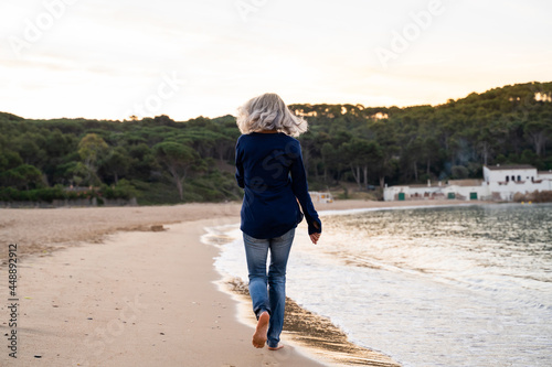Mature woman walking on beach
