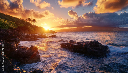 maui, hawaii, tropical island, paradise, ocean, sea, sunset, beach, water, sky, landscape, sunrise, sun, nature, rock, coast, wave, seascape, stone, dusk, horizon, rock, cloud, cloud, wave, sundown, summer, coastline, vacation