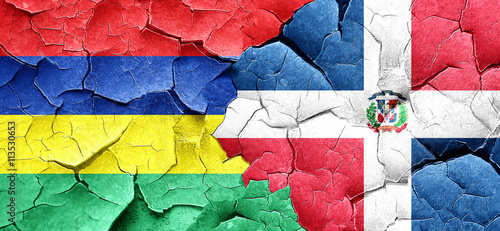 Mauritius flag with Dominican Republic flag on a grunge cracked