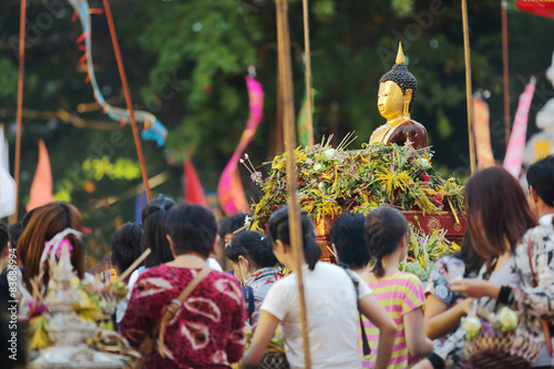 siam, city, pillar, chiang, festival, worship, people, crowd, travel, asian, temple, buddhist, wat, june, traditional, offering, art, holiday, colourful, flower, celebration, happiness, outdoors, cheerful, gold, culture, ancient, statue, buddha