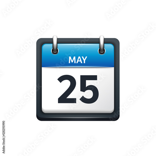 May 25. Calendar icon.Vector illustration,flat style.Month and date.Sunday,Monday,Tuesday,Wednesday,Thursday,Friday,Saturday.Week,weekend,red letter day. 2017,2018 year.Holidays.