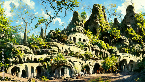 Mayan civilization forest land cave illustration art Generative AI Content by Midjourney