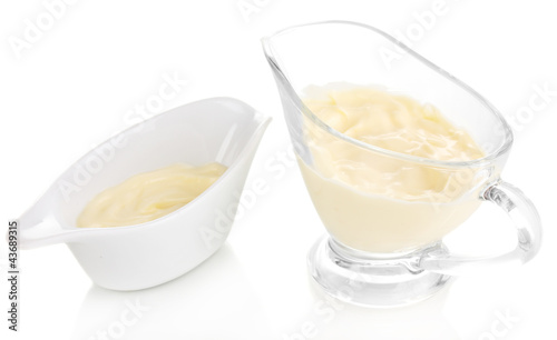Mayonnaise in bowls isolated on white